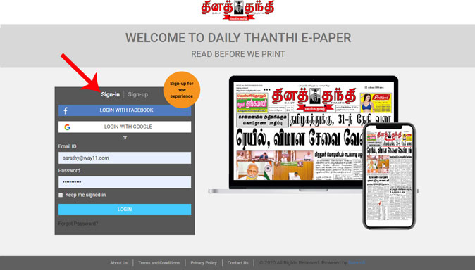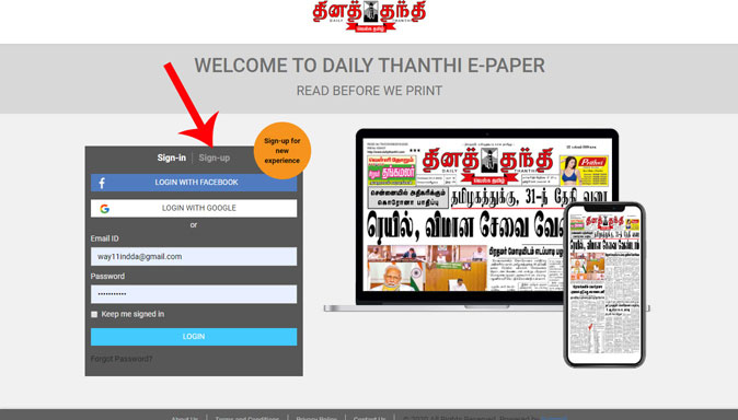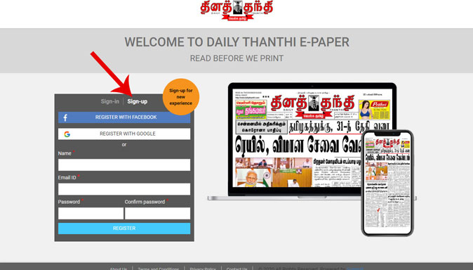 Step 1: இ-பேப்பர் இணையதளத்தில் "Sign-up" பட்டனை கிளிக் செய்யவும்