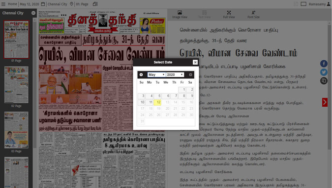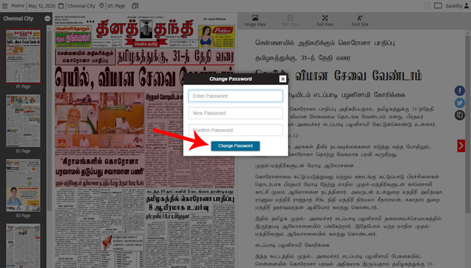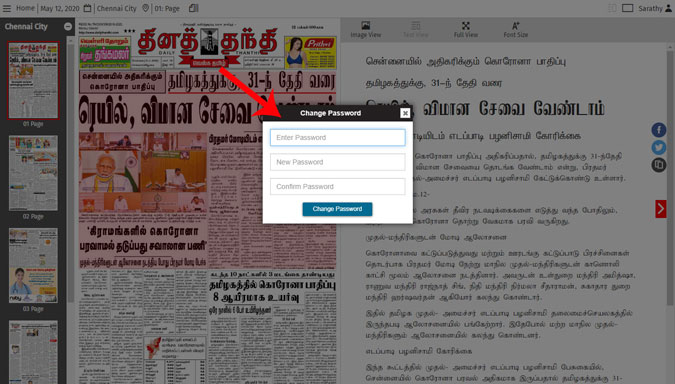 Step 3: வெற்றிகரமாக லாகின் செய்த பின் பேஸ்புக்/கூகுள் லாகின் பக்கங்கள் மூடி, இ-பேப்பர் முகப்பு பக்கம் திறக்கும்.